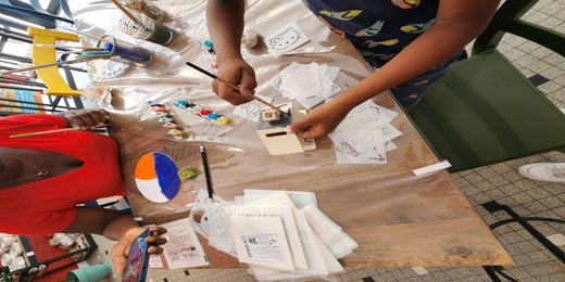 Admirez les créations uniques : peinture sur céramique, sur toile, ou personnalisation de t-shirts, de trousses, de tote bags, et bien d'autres supports, ainsi de moments inoubliables en nos Soirées Apéros Peinture.